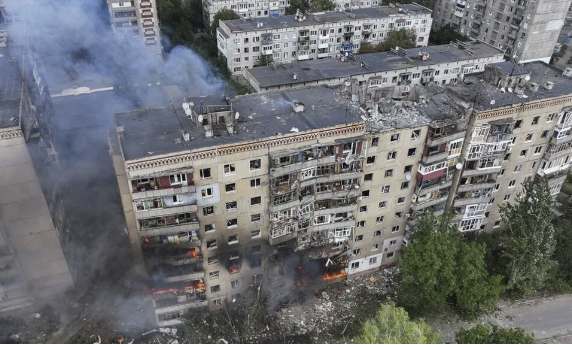 9μ 10μΌ(νμ§μκ°) μ°ν¬λΌμ΄λμ μ£Όκ±°μ© κ±΄λ¬Όμ΄ λ¬μμ 곡μ΅μ λ°μ νκ΄΄λ λͺ¨μ΅. (μ΄λ―Έμ§ μΆμ²-μ°ν©λ΄μ€) |